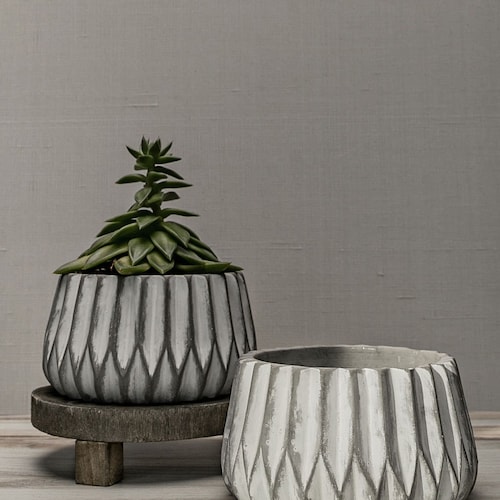 Fluted Concrete Planter Ribbed Planter Tall Planter Pot Etsy